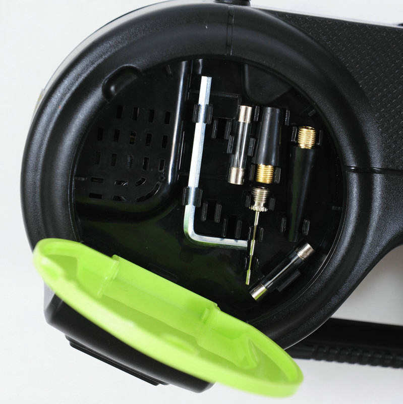Multi-Functional Design: A jack, compressor pump, and electric wrench.